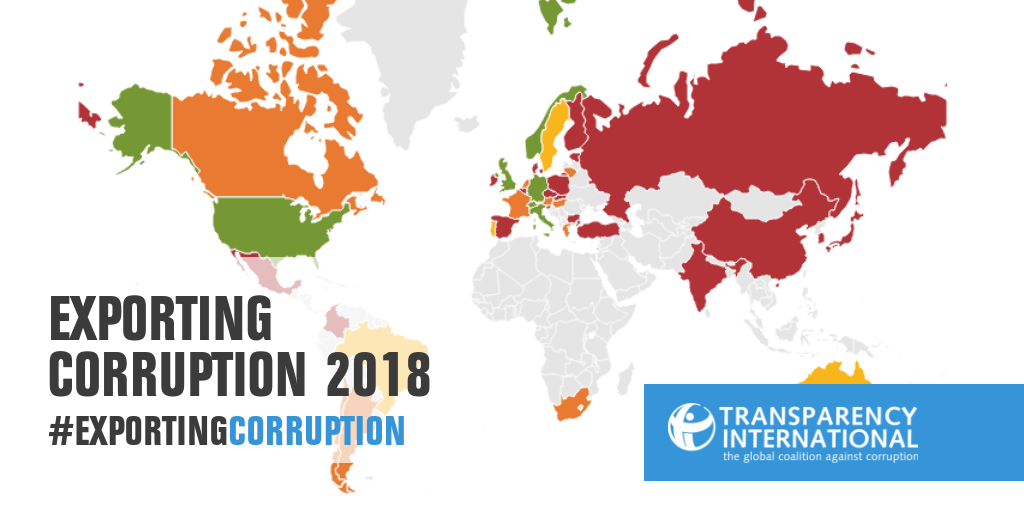Ο οργανισμός κατά της διαφθοράς έχει θέσει σε κυκλοφορία την έκθεσή του για την Εξαγωγή Διαφθοράς (“Exporting Corruption”), όπου βαθμολογεί χώρες, βασιζόμενος στην επιβολή κυρώσεων που επιβάλλουν για την τιμώρηση της δωροδοκίας που διαπράττεται στην αλλοδαπή, σύμφωνα με τη Σύμβαση του ΟΟΣΑ ενάντια στη Δωροδοκία.