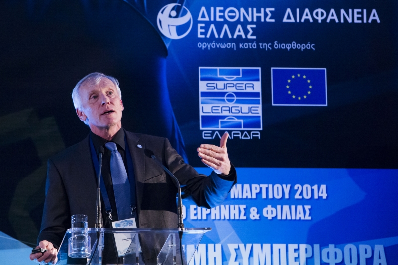 -ο Νικόλαος Θεοδώρου, Σύμβουλος της Διεθνούς Διαφάνειας-Ελλάδος, ο οποίος παρουσίασε τις δράσεις και τα αποτελέσματα του προγράμματος “Staying on Side” στην Ελλάδα, που υλοποιείται από τη Διεθνή Διαφάνεια-Ελλάδος και τη Super League, με στόχο την πρόληψη του φαινομένου των προκαθορισμένων αγώνων